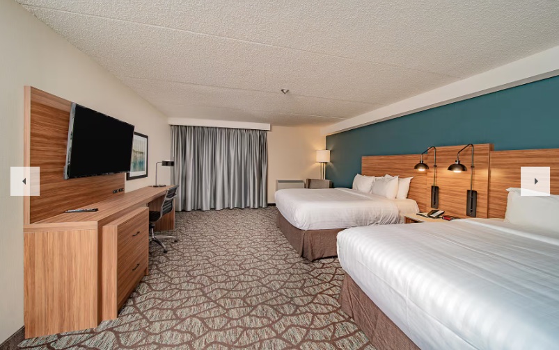 Hotel Amenities= Onsite self-parking $20+ Taxes. We’re a short walk to the Falls, Clifton Hill and many other area attractions. Our spacious, comfortable guestrooms consist of 2 queen beds, coffee maker, mini fridge, flat screen TVs and much more. Complimentary wireless Internet is available throughout the hotel. We also have an indoor pool, fitness room and games room for your enjoyment.  At check in each room will receive a welcome package which includes dining vouchers towards our restaurants located nearby and attractions. (IHOP, TGIF’s, Applebee’s, STK Steak House (Fallsview), Ruth’s Chris Steak House, Out Back Steak House, Vittorio’s Italian Eatery, Benihana’s Japanese Steak House) and our Niagara Fun Zone, 20, 000 square foot family facility.